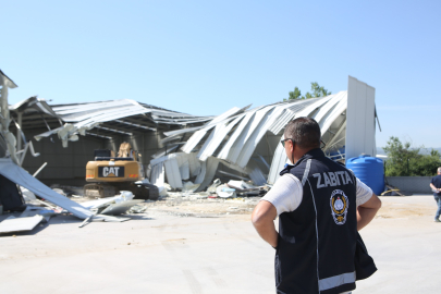 Bursa'nın Nilüfer ilçesi Yaylacık Mahallesi’nde tarım arazisi üzerine inşa edilen 1 depo belediye ekipleri tarafından yerle bir edildi. Nilüfer Belediyesi ekipleri tarafından tespit edilerek, yasal prosedürleri tamamlanan ruhsatsız yapılar bir bir yıkılıyor. Çevik kuvvet ve zabıta ekiplerinin güvenlik önlemleri çerçevesinde, Yaylacık Mahallesi’nde bin 500 metrekarelik bir depo tamamen yıkılırken, 280 metrekarelik depo da kullanılamaz hale getirildi.