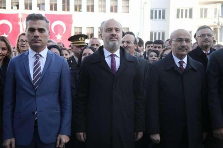 Vali Mahmut Demirtaş, Bursa Büyükşehir Belediyesi Başkanı Alinur Aktaş, Atatürk heykeline çelenk sundu.