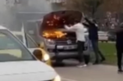 Olay, merkez Nilüfer ilçesi Fatih Sultan Mehmet Mahallesi mevkiinde meydana geldi. Cadde üzerinde seyir halindeki otomobil sürücüsü, aracın motor kısmından dumanların yükseldiği görünce hemen frene bastı. Araçtan hızla aşağı inen sürücü kaputu açtığında aracın yandığını gördü. Durum üzerine trafikteki diğer sürücülerde yanan araca müdahale etmek için eline aldıkları yangın tüpüyle alevleri söndürdü. Korku dolu anlar kameraya yansırken, olayla ilgili tahkikat başlatıldı.