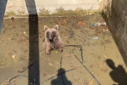 Bursa'da sulama kanalına düşen ayı, 5 saatlik çalışmayla kurtarıldı