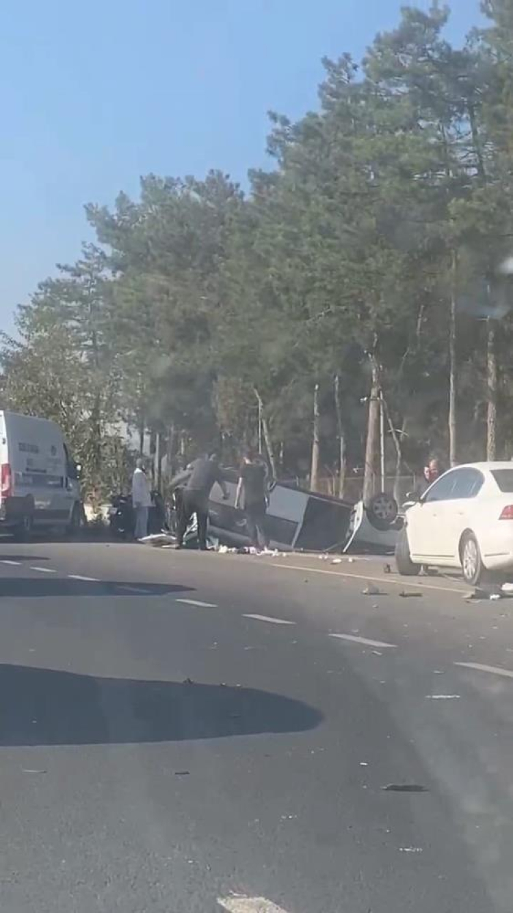 Çarpışmanın savrulan 16 JUR 34 plakalı otomobil takla atarak ters durdu. Kaza sonucu sürücü Ferhat B. yaralandı. Yaralı 112 Acil Servis ekipleri tarafından İnegöl Devlet Hastanesine kaldırıldı.