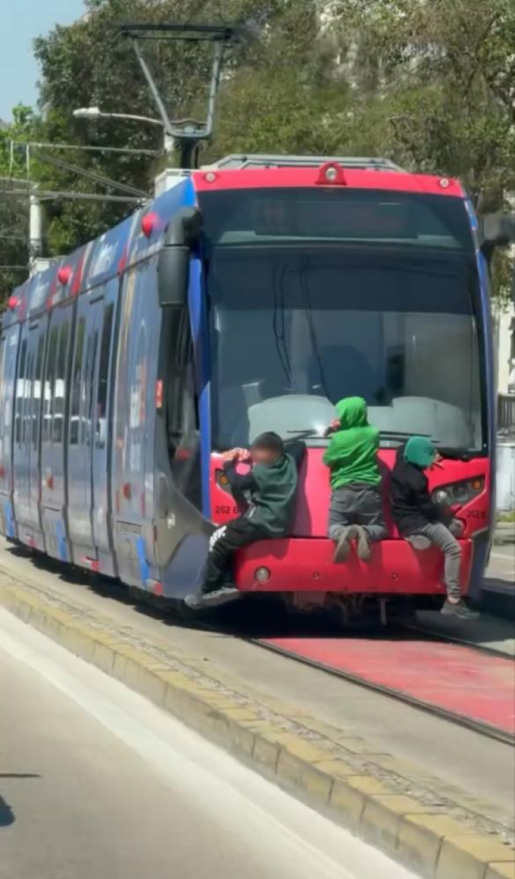 Hareket halindeki tramvayın arkasına tutunan çocuklar metrelerce bu şekilde ilerledi. Çocukların tehlikeli yolculuğunu gören vatandaşlar duruma tepki gösterirken, kimilerine bu görüntüler 'pes' dedirtti. Herhangi bir olumsuzluk yaşanmadan tramvaydan ayrılan çocuklar gözden kayboldu.