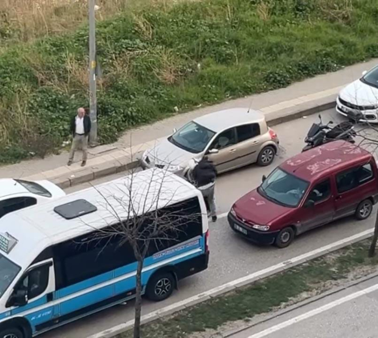 Bursa’nın Yıldırım ilçesinde motosiklet sürücüsü ile otomobil sürücüsü arasında çıkan tartışma kısa sürede kavgaya dönüştü. Otomobil sürücüsünün motosiklet sürücüsüne copla saldırdığı anlar bir vatandaşın cep telefonu kamerasına yansıdı.