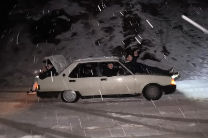 Bursa'da yazlık lastikle karda kalan araca insan takviyesi