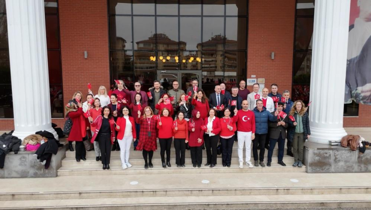 Milli Eğitim Bakanlığı’nın talimatı ve Türkiye Yüzyılı Maarif Modeli vizyonu doğrultusunda düzenlenen "İlk Derste Bayrak Sevgisi" temalı etkinlikte, okul bahçesi kırmızı-beyaz renklere büründü. Etkinlik kapsamında bin öğrenci, ellerinde bin Türk bayrağıyla okul bahçesinde bir araya geldi. Öğrencilerin aynı anda bayraklarını açmasıyla oluşan görüntü, görsel bir şölen oluştururken, etkinlik duygu dolu anlara sahne oldu.