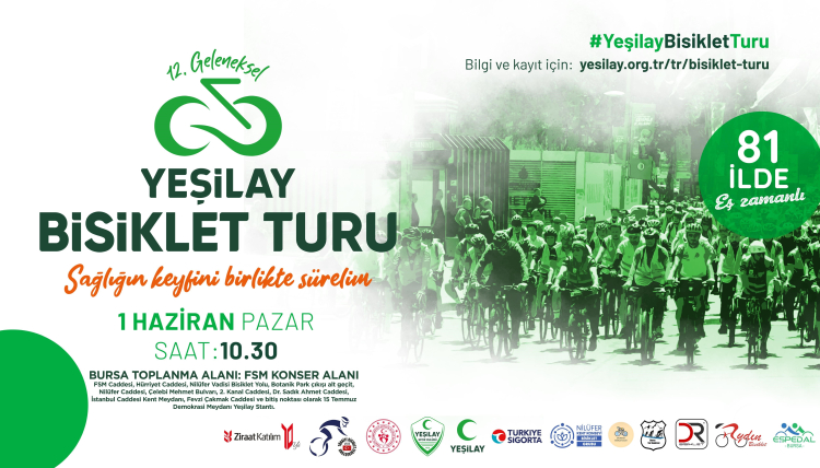Türkiye’nin en köklü sivil toplum kuruluşlarından biri olan Yeşilay, bağımlılıkla mücadele kapsamında farkındalık etkinliklerine hız kesmeden devam ediyor. Bu kapsamda 2011 yılından bu yana düzenlenen ve Türkiye’nin en büyük bisiklet organizasyonlarından biri haline gelen Geleneksel Yeşilay Bisiklet Turu’nun 12’ncisi, 1 Haziran Pazar günü saat 10:30’da, "Sağlıklı Yaşamın Keyfini Birlikte Sürelim" sloganıyla gerçekleştirilecek.