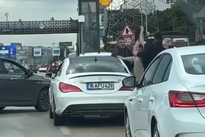 Bursa'da yol verme sebebiyle tartışan sürücüler, araçlarından üstünden atlayıp birbirlerine saldırdı. Yumrukların havada uçuştuğu kavgayı, araya giren diğer sürücüler ayırdı.