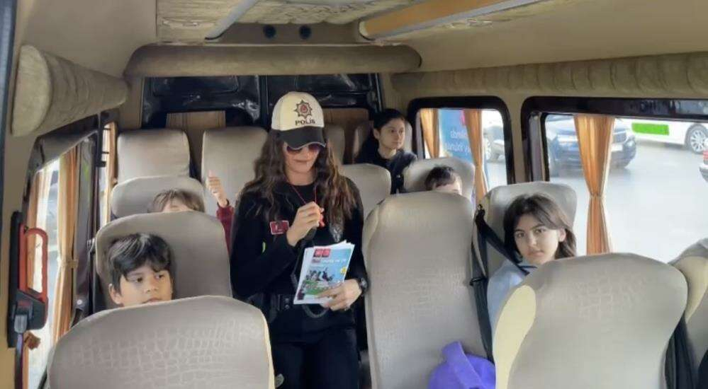 Polis ekipleri inceledikleri servis araçlarında çocuklara, rehber personelin uyarılarını dikkate almalarını, emniyet kemerlerinin takılmalarını, camdan sarkmamaları, ayakta seyahat etmemeleri konularında uyarılarda bulunuldu.