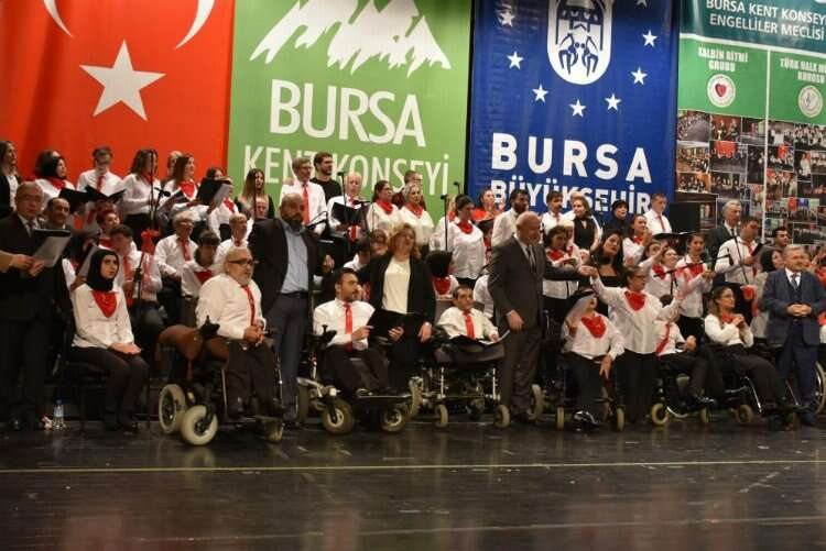 Bursa Büyükşehir Belediyesi’nin katkılarıyla Bursa Kent Konseyi Engelliler Meclisi üyeleri tarafından düzenlenen konserde, engelli bireyler sahne performanslarıyla dinleyenlerden büyük alkış aldı.