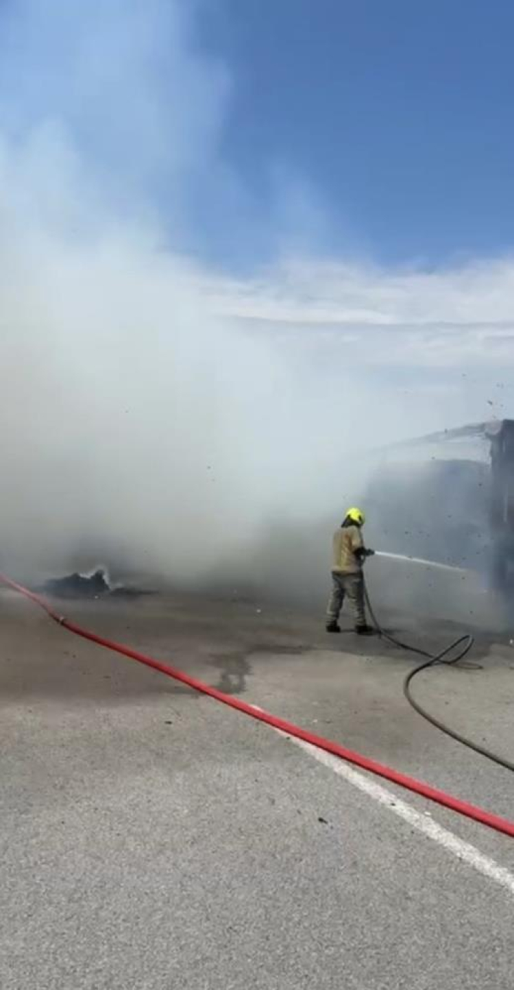 Edinilen bilgiye göre, seyir halindeki TIR'ın dorsesinde henüz belirlenemeyen bir nedenle yangın çıktı. Presli kartonların tutuşmasıyla alevler kısa sürede büyüyerek tüm dorsayı sardı. Alevlerin hızla yükselmesi üzerine sürücü, aracı emniyet şeridine çekerek kendini dışarı attı ve durumu itfaiyeye bildirdi.