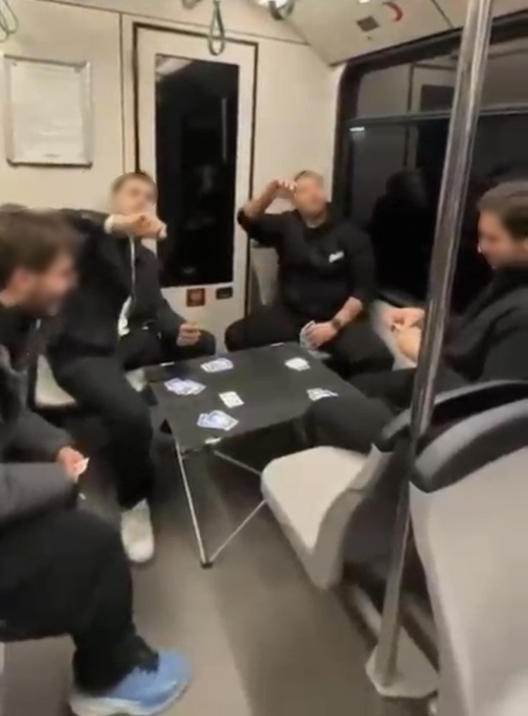 Bursa'da metro içerisinde masa kurup kağıt oyunu oynayan gençler, diğer yolcuların hayret dolu bakışlarına neden oldu. Yolculuk sırasında alanın ortasına oturdukları küçük masayı açan grup, kısa sürede kartlarını çıkararak oyuna başladı. O anları gören vatandaşlar hayret dolu bakışlarla izlerken, bazı yolcular cep telefonlarıyla ilginç anları kaydetti. Görüntüler sosyal medyada da dikkat çekti.
