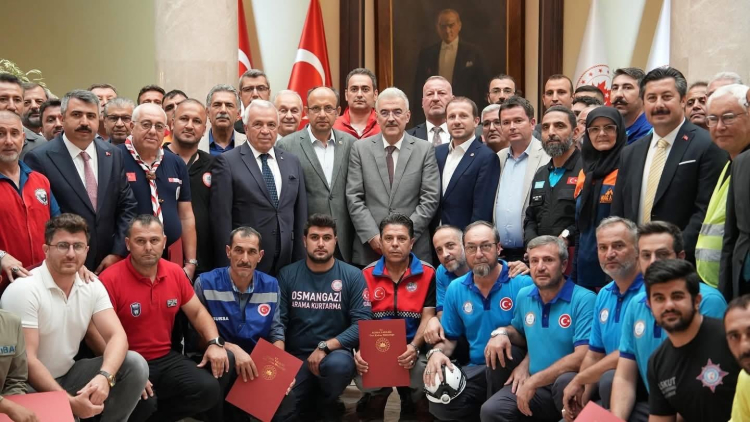 Bursa Muş-Der Arama Kurtarma Ekibine Vali Ayyıldız'dan Takdir Belgesi