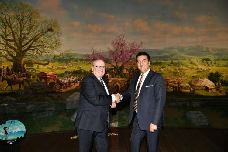 Osmangazi Belediye Başkanı Mustafa Dündar, Osmangazi ve Lahn Dill Kreis kardeşliğinin 10. yılı çerçevesinde Bursa’ya gelen Lahn Dill Kreis Belediye Başkanı Wolfgang Schuster başkanlığındaki heyeti, Panorama 1326 Bursa Fetih Müzesi’nde ağırladı. Kardeş belediyeler ile karşılıklı ilişkileri sürekli güçlendirdiklerini belirten Başkan Dündar, Almanya’nın Lahn Dill Kreis Belediyesi ile çok iyi dost olarak Türk-Alman ilişkilerine katkı sağladıklarını ifade etti. Başkan Dündar, misafirlerine ilk olarak Fetih Müzesi’ni gezdirdi. Müzenin mimari ve teknik özellikleri hakkında bilgiler veren Başkan Dündar, Fetih Müzesi’nin 42 metrelik kubbe açıklığıyla dünyanın en büyük tam panoramik müzesi olduğunu söyledi. Başkan Dündar, daha sonra Lahn Dill Kreis Belediye Başkanı Wolfgang Schuster ve beraberindeki heyeti Bursa’nın fetih gününün tasvir edildiği 3 boyutlu panoramik resmin olduğu kubbe bölümüne çıkarttı. Panoramik resmi dikkatlice inceleyen Alman heyet, şaşkınlıklarını gizleyemedi. Alman heyet, müzedeki gezilerinin sonunda özel olarak hazırlanan alanda yayı eline alarak ok atma deneyimi yaşadı. Alman heyet son olarak ise hatıra para basma bölümüne geçerek setinde Osmanlı’nın ilk sikkesinden bastı.