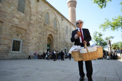 Bursa'da "Kravatlı Simitçi" olarak tanınan Ahmet Berksun (65), öğrenciyken yaptığı simitçiliği, kamudan emekli olduktan sonra da yapmaya karar verdi. Memurluk günlerinde giydiği takım elbiseyi, emekliliğinde de çıkarmayan Berksun, bu şekilde Bursa’nın tarihi noktalarında koluna taktığı sepetiyle simit satmaya başladı. Şıklığının yanı sıra renkli kişiliği ile de çarşı esnafının gönlünde taht kuran Berksun’u ilk görenler fotoğraf çektiriyor.