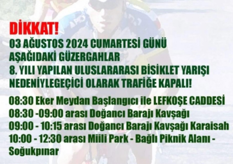 3 Ağustos Cumartesi günü Uluslararası Bisiklet Yarışı nedeniyle Bursa'da bazı yollar geçici olarak trafiğe kapatılacak.