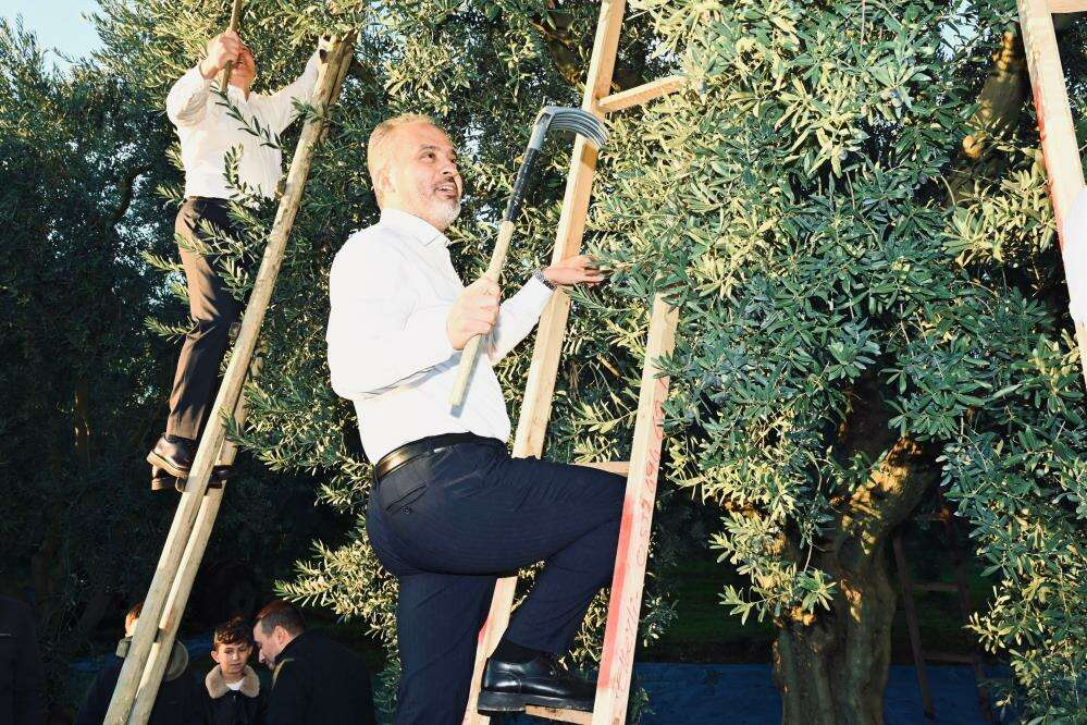 Tören öncesinde zeytin bahçesine geçen Başkan Alinur Aktaş, Milletvekili Mustafa Varank ve beraberindekiler, çiftçilerle sohbet etti. Daha sonra Başkan Aktaş ve Milletvekili Varank ağaca çıkarak zeytin topladı.