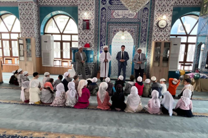 Bursalı minik öğrenciler ilk namazlarını kılıp seccadelerini aldı