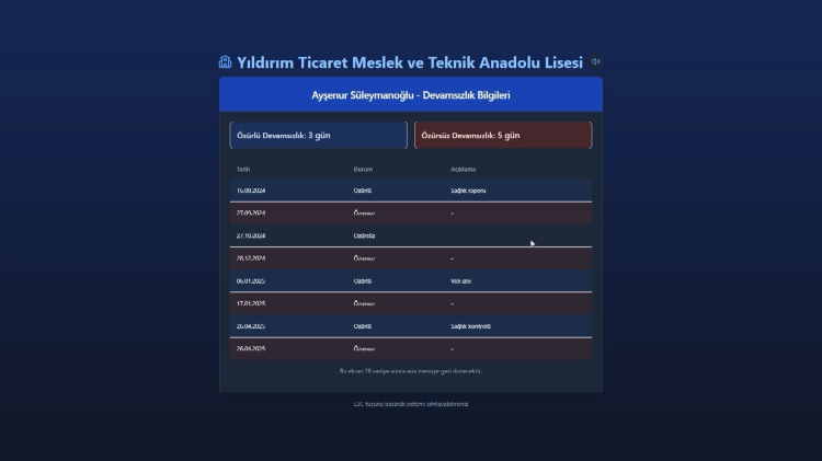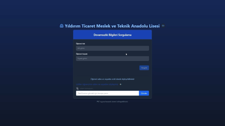 Geliştirdikleri proje sayesinde velilerin öğrencileri hakkında güvenli ve hızlı bir şekilde bilgi edineceklerini söyleyen 11. sınıf öğrencisi Ayşenur Süleymanoğlu, "Projemizin amacı öncelikle görme engelli ve işitme engelli velilerin işlerini kolaylaştırmak ve okula gelen velilerin işlemlerini beklemeden daha hızlı halletmesini sağlamak. İşitme engelliler için görsel, görme engelliler için ise işitsel bir platform hazırladık. Programa giriş yapılmasının ardından yüz tanıma sistemiyle bir sayfaya atıyor. Burada görsel ve işitsel olarak yapılmak istenen işlem soruluyor, verilen cevaba göre seçilen işlemin yapılacağı sayfaya yönlendiriyor. Okulumuzdaki eksikliklerden ilham alarak böyle bir proje geliştirdik" şeklinde konuştu.