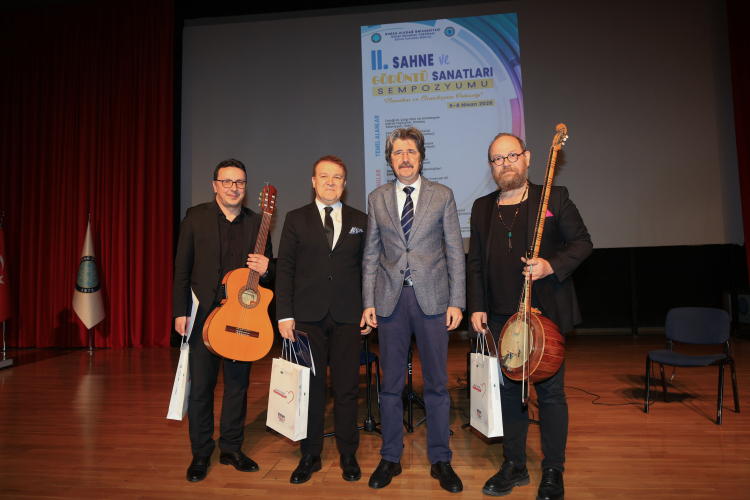 Program kapsamında düzenlenen törende konuşan BUÜ Rektörü ve Sempozyum Onursal Başkanı Prof. Dr. Ferudun Yılmaz, araştırma üniversiteleri arasındaki yarışın genellikle sosyal bilimler ve sanat alanındaki faaliyetleri ihmal eden bir görüntü sergilediğini ifade etti. Uluslararası sıralama kriterlerinin sanat alanındaki birikimi tam olarak yansıtamamasının, bu alanlarda emek veren akademisyen ve öğrencilerde bir değersizlik hissi yaratmaması gerektiğini vurgulayan Prof. Dr. Ferudun Yılmaz, üniversite kurumunun insan ediminin tüm zenginliğini bünyesinde barındıran bir yapı olduğunu belirtti. Bilimsel ve teknolojik ilerlemenin sanatın doğasını dönüştürdüğüne dikkat çeken Yılmaz, yapay zeka ve dijital teknolojilerin sunduğu imkanların yanı sıra insani varoluş açısından barındırdığı kaygılara da değindi. Konuşmasının sonunda sanatın insan kalabilmenin yegane yolu olduğunu hatırlatan Rektör Yılmaz, dünyanın distopyaya savrulduğu bir dönemde umudun ancak sanatsal faaliyetlerden neşet edebileceğini ve üniversite olarak bu düşünsel zemine katkı sunmaya devam edeceklerini önemle vurguladı.