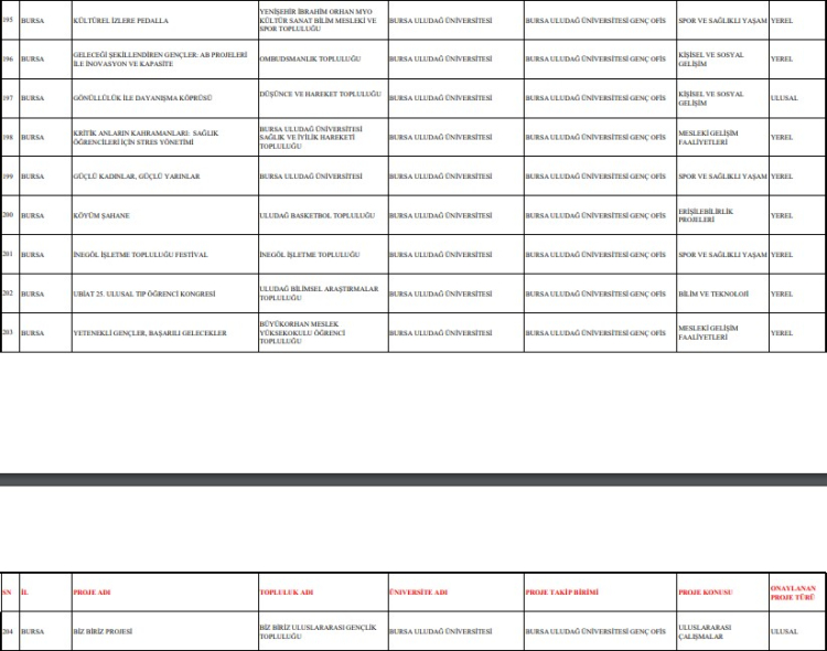 Genç ofislerin üniversite öğrenci topluluklarıyla etkileşimlerini artırmayı ve gençlerin gelişimine katkı sağlamayı hedefleyen programda BUÜ öğrenci topluluklarının gönderdiği 10 proje destek almaya hak kazandı. Yaklaşık 180 öğrenci topluluğuna sahip olan BUÜ’de faaliyet gösteren Yenişehir İbrahim Orhan MYO Kültür Sanat Bilim Mesleki ve Spor Topluluğu, Ombudsmanlık Topluluğu, Düşünce ve Hareket Topluluğu, Sağlık ve İyilik Hareketi Topluluğu, Tekvando Wing Chun Topluluğu, Uludağ Basketbol Topluluğu, İnegöl İşletme Topluluğu, Uludağ Bilimsel Araştırmalar Topluluğu, Büyükorhan MYO Öğrenci Topluluğu ve Biz Biriz Uluslararası Gençlik Topluluğu hazırladıkları projelere destek almayı başardı.