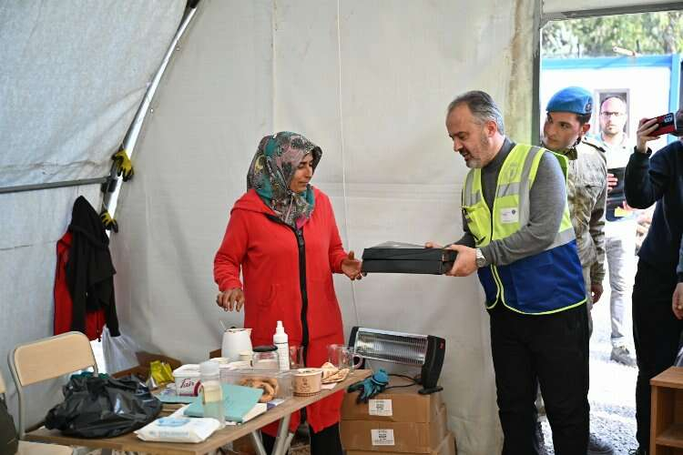 Bursa Büyükşehir Belediyesi, deprem felaketiyle omuzlarındaki yük katlanarak artan, çadır ve konteyner kentlerde yeni bir düzen kurmaya çalışan kadınları, 8 Dünya Kadınlar Günü’nde de unutmadı. Çadır kentleri gezen Bursa Büyükşehir Belediye Başkanı Alinur Aktaş, afetin yükünü omuzlayan kadınları çadırlarında ziyaret ederek, çeşitli hediyelerle onlara moral verdi.