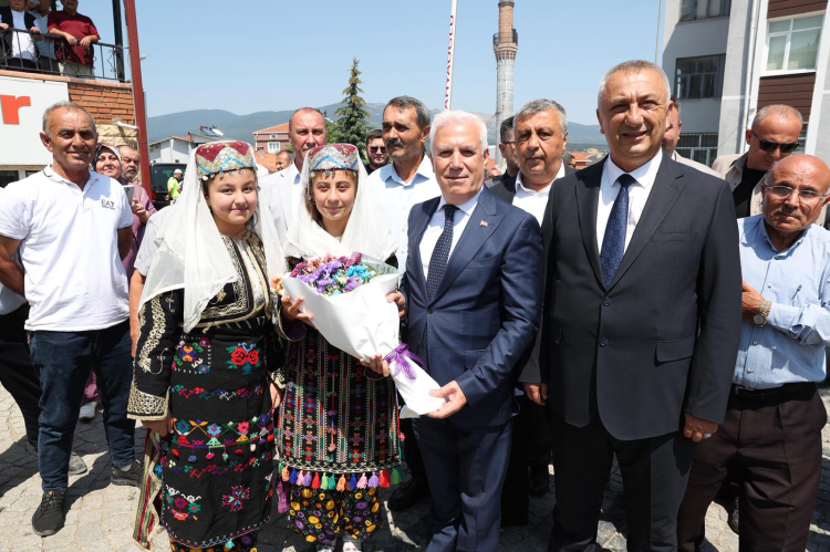 Tören alanında alkışlar eşliğinde karşılanan Başkan Bozbey, “Domaniç'i Bursa'nın 18. ilçesi olarak görüyoruz. Seçimden önce bu meydanda konuşma yapmıştım. Domaniçli büyüklerimiz, ‘Başkanım hiç merak etme, o iş tamam’ demişlerdi. Bugün buradayız. Söz verdiğimiz gibi Domaniç’i 18. ilçemiz olarak görüyoruz ve destekliyoruz. Üretim yapan vatandaşlarımıza bir nebze olsun katkı sağlamak, onların yanlarında olduğumuzu göstermek maksadıyla 44 bin metre damlama sulama hortumu ve 2.200 litre sıvı gübre dağıtımı yaptık. Çiftçimizin yüzü gülsün istiyoruz” dedi.