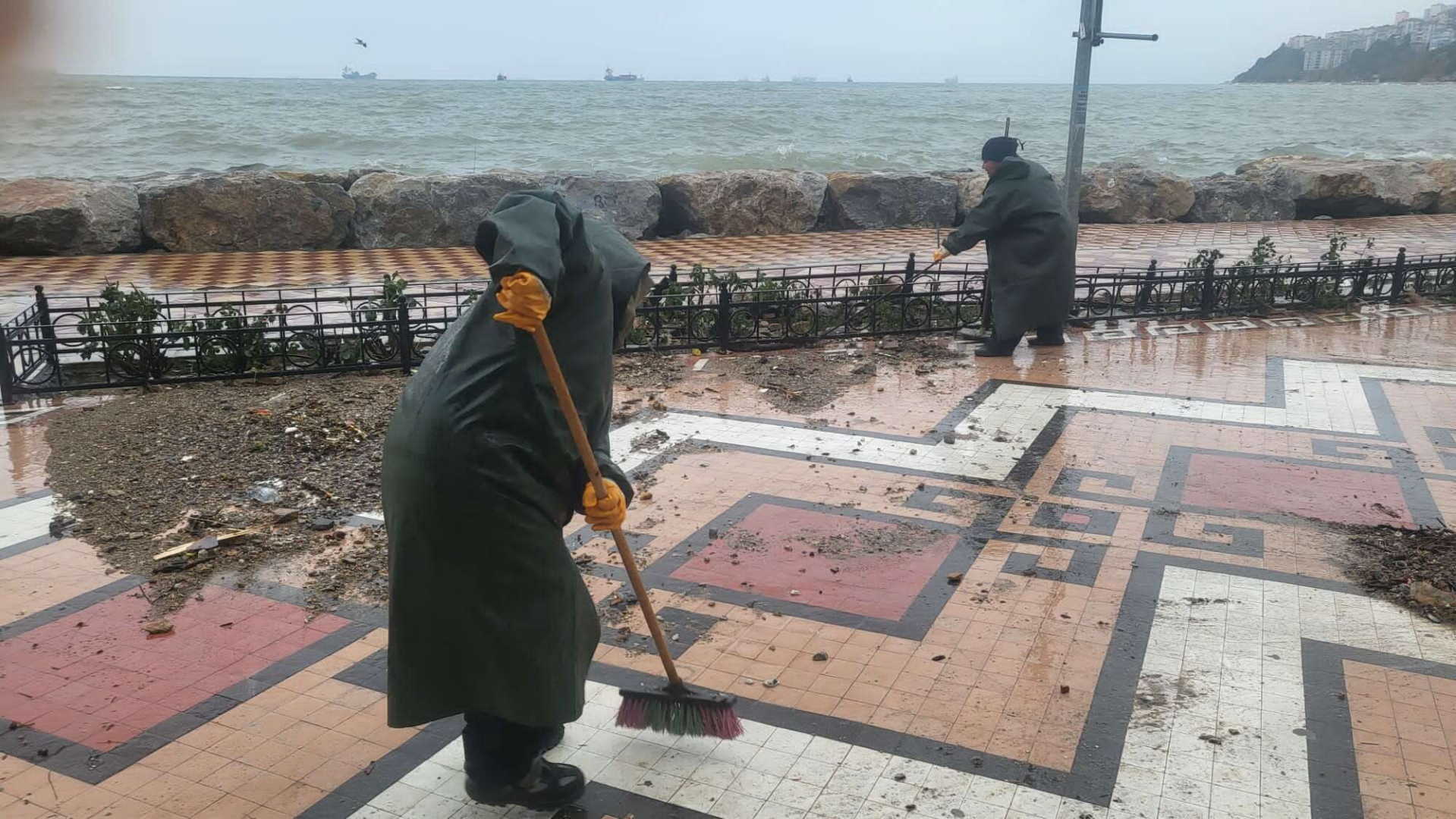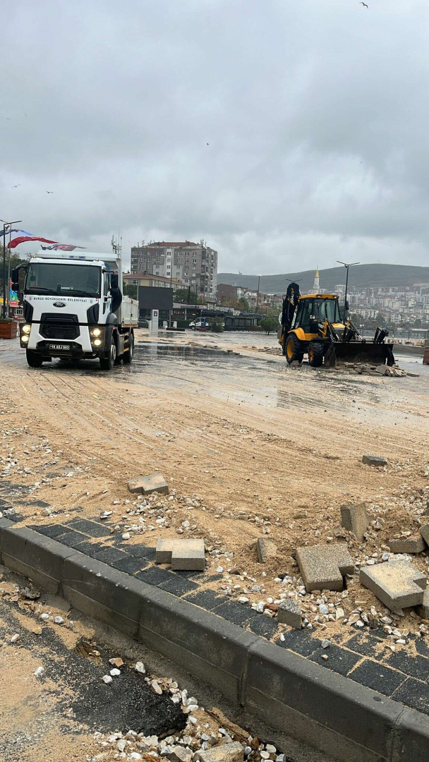 Bursa’da etkisini gösteren yağmur, lodos ve fırtına özellikle kıyı ilçelerinde hayatı olumsuz etkiledi. Sahil şeritlerinde dev dalgalar ve fırtına sebebiyle elektrik direkleri, ağaçlar ve panolar devrildi. Büyükşehir Belediyesi ekipleri sabah saatlerinden itibaren Gemlik ve Mudanya sahilinde temizleme çalışmalarına başladı. Gemlik ilçesine 80 personel, 5 kepçe, 5 kamyon, 4 tanker, 2 süpürge aracı ve 7 kamyonetle müdahalede bulunan ekipler, bir yandan fırtınanın yol açtığı enkazı kaldırırken, diğer taraftan da yıpranan kent mobilyaları ve parkların onarımına başladı.