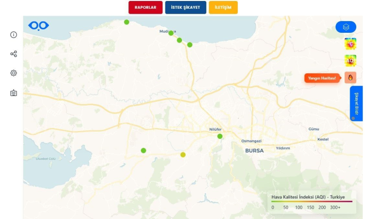 Bursa Büyükşehir Belediyesi, hava ve gürültü kirliliğinin tespiti için geçtiğimiz aylarda devreye aldığı hava kalitesi izleme sistemine yangın izleme sistemini de entegre etti.