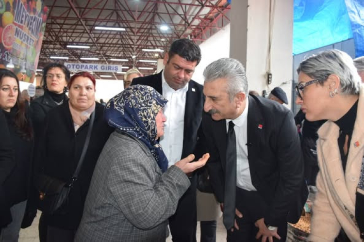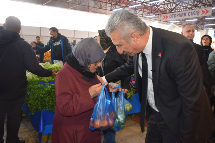 Pazar tezgahlarını tek tek gezen Yeşiltaş, Belediye Başkanı Şükrü Erdem ve İlçe Başkanı Gökhan Demir ile birlikte esnafın, yurttaşların beklentilerini ve taleplerini dinledi.