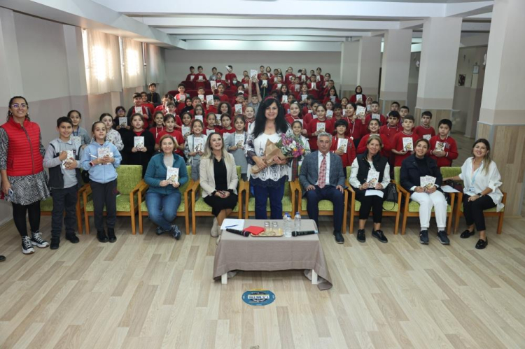 Nilüfer Belediyesi'nin 'Çocuklara Kitap Söyleşileri' etkinliğinde konuşan eğitmen ve yazar Çiğdem Sezer, 'Yüz Yaşında Bir Çınar' adlı kitabı üzerinden ilkokul öğrencilerine Cumhuriyet'in değerlerini anlattı.