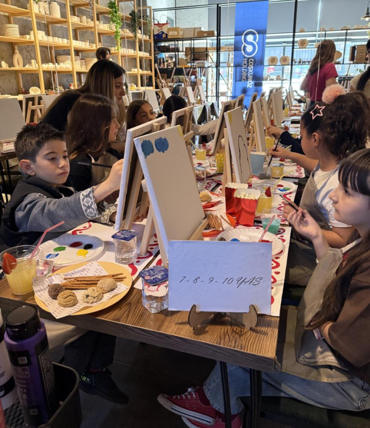 Bir sanat merkezinde, uzman sanat eğitmenleri eşliğinde düzenlenen etkinlikte çocuklar, tuval boyama, obje boyama ve ahşap boyama atölyelerine katılarak farklı teknikler ve materyallerle çalışma fırsatı yakaladı. Sanatı deneyimleyerek öğrenmenin keyfini yaşayan çocuklar, hayal dünyalarını özgürce ifade etti.