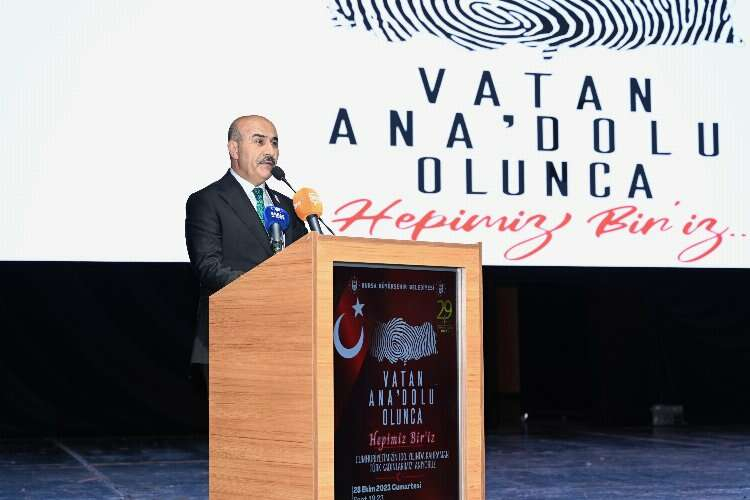 Bursa Valisi Mahmut Demirtaş’ta sözlerine Filistin’de yaşanan soykırıma değinerek başladı ve “Gazze’de insanlık dramı yaşanıyor. Soykırımdan dolayı İsrail’i nefretle kınıyorum” dedi.