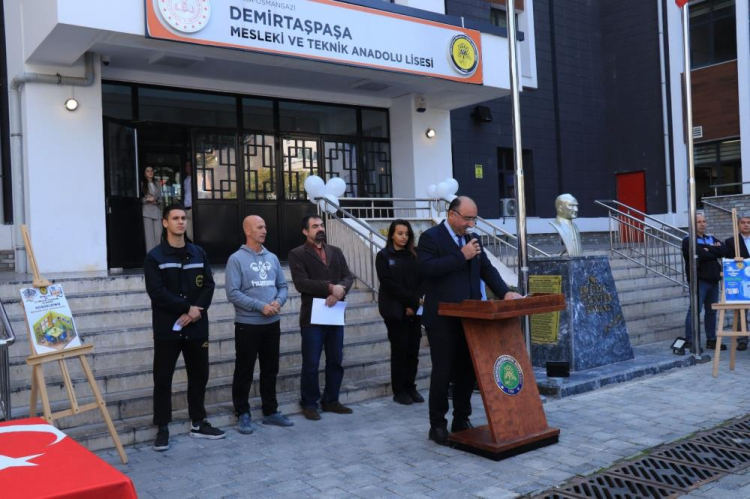 Tören İstiklal Marşı ve saygı duruşu ile başladı. Programa Osmangazi İlçe Milli Eğitim Müdürü Metin Sezer, Osmangazi İlçe Milli Eğitim Şube Müdürü Hasan Ali Tüzen, DEMSİAD Yönetim Kurulu Başkanı Alptekin Şahintürk, okul müdürü Celal Ulusoy ve Demirtaşpaşa Meslek Lisesi Başkanı Atilla Zeytinciler katıldı.