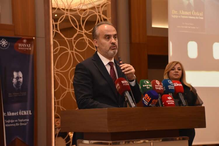 Osmangazi Belediye Başkanı Mustafa Dündar da konuşmasında Dr. Ahmet Özkul’un Bursa’da özel sağlık hizmetlerinin öncülüğünü yaptığını, Hayat Hastanesi ile Bursa’ya önemli bir sağlık kurumu kazandırdığını dile getirdi.