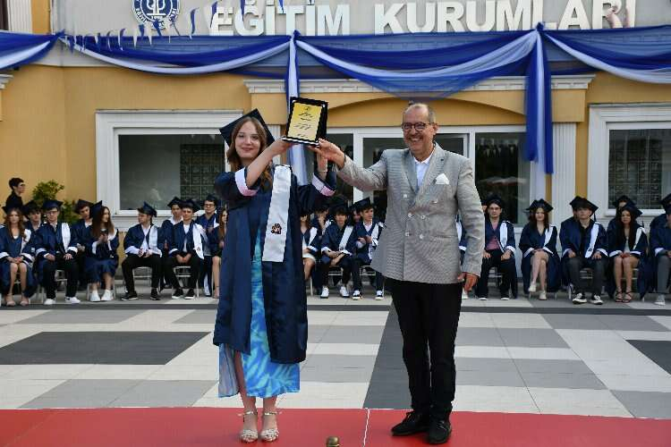 12. sınıf öğrencilerinde Duru Besen ve Yağız Çetin , 11. sınıf öğrencilerinden Dilara Kolay ve Mehmet Umut Sokullu'ya okulun bayrağını ve flamasını törenle teslim ettiler. Öğretmenler eşliğinde öğrenciler anı belgelerini aldılar. Okul bahçesinde konfeti ve müzik eşliğinde keplerini büyük bir coşkuyla atan öğrenciler, aileleriyle hatıra fotoğrafı çektirdiler. (HABER MERKEZİ)