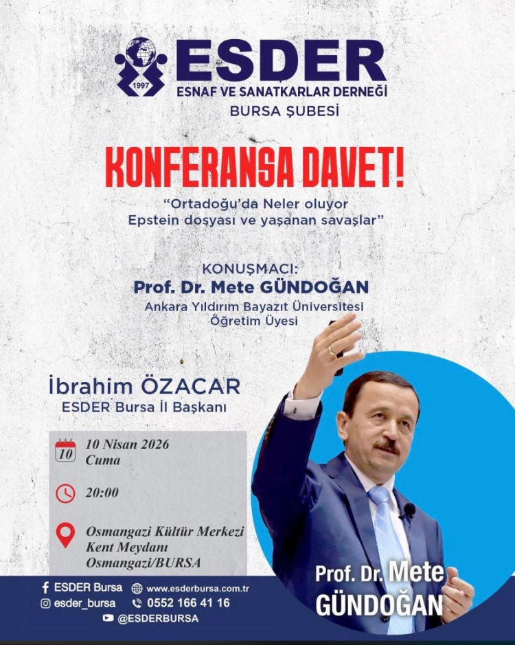 ESDER Bursa İl Başkanı Özacar, tüm Bursalıları konferansa davet ederek, kamuoyunun doğru bilgilendirilmesi adına basın mensuplarının da programa katılım göstermesini temenni etti.