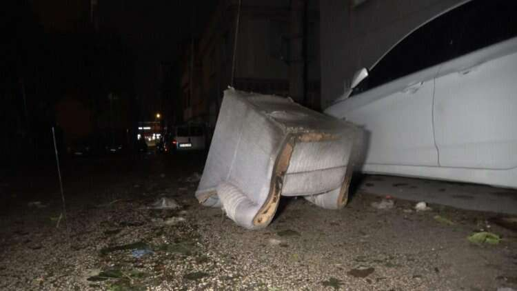 Çok sayıda çatı uçması olayı gerçekleşirken, tenteler ve sert cisimler de havada uçtu