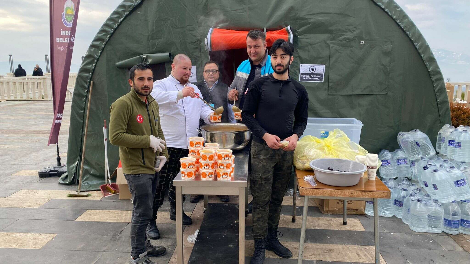İnegöl’den giden yüzlerce yardım tırı ile birlikte 156 iş makinesi de bölgeye sevk edildi. Aynı zamanda İnegöl Belediyesi Yemek Tırı da depremin ilk günü Pazartesi akşamı itibariyle yola çıkarak Kahramanmaraş Onikişubat ilçesine ulaştı. Gastro İnegöl Mutfağının şefleri, 3 haftadır Kahramanmaraş Onikişubat ilçesinde günlük 11 bin kişilik sıcak yemek dağıtımı gerçekleştiriyor.