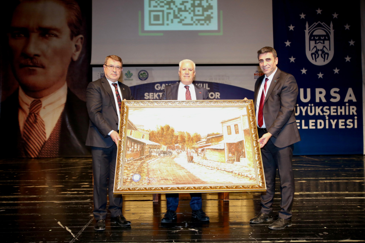 Programın sonunda BESOB Başkanı Fahrettin Bilgit ve Bursa Emlak Müşavirleri Esnaf Odası Başkanı Erdal Çelebi tarafından Başkan Mustafa Bozbey’e günün anısına tablo hediye edildi.