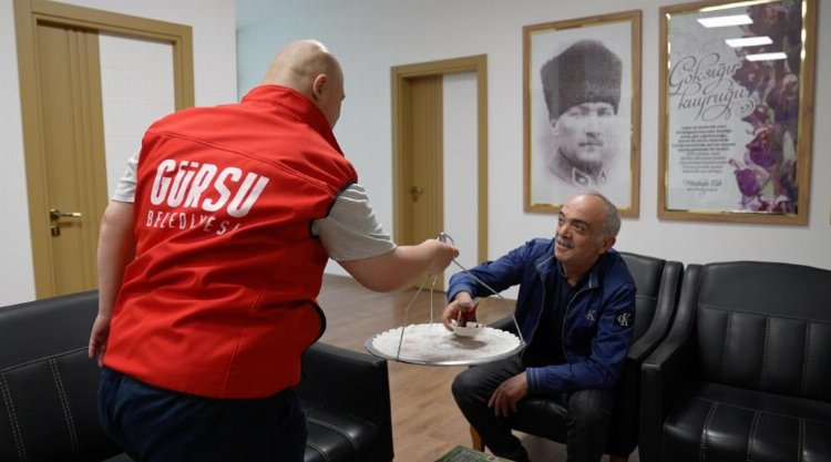 “Mesut, hepimizin göz bebeği” diyen Gürsu Belediye Başkanı Mustafa Işık, “İlçe halkımız ve Belediye personellerimizle olan sıcak iletişimiyle herkes tarafından çok sevilen Mesut kardeşimizi, bu özel hafta çerçevesinde, belediyemizin çay ocağı sorumlusu yaptık. Azmi, çalışkanlığı ve ustalığıyla üstlendiği görevi en iyi şekilde yerine getirerek, yine kalplerimizi fethetti. Mesele kalplerdeki engelleri kaldırmak, engelli kardeşlerimizin kendilerine imkanlar sunulduğunda neler yapabileceklerini göstermiş olduk” dedi.