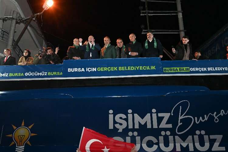 Bursa’da bu dönem altyapıdan ulaşıma, kültürden spora kadar pek çok çalışmayı hayata geçiren ve yeni döneme dair vizyon projelerini açıklayan Büyükşehir Belediye Başkanı ve Cumhur İttifakı Bursa Büyükşehir Belediye Başkan adayı Alinur Aktaş, Yıldırım ilçesi Hacivat Mahallesi’nde düzenlenen buluşmada meşale ve havai fişek gösterileriyle karşılandı. Mahalle halkının büyük ilgi gösterdiği buluşmaya, Başkan Aktaş’ın yanı sıra AK Parti Genel Başkanvekili ve Bursa Milletvekili Efkan Ala, Bursa Milletvekili Mustafa Varank, AK Parti İl Başkanı Davut Gürkan, Yıldırım Belediye Başkanı Oktay Yılmaz, meclis üyeleri ve siyasi parti temsilcileri de katıldı.