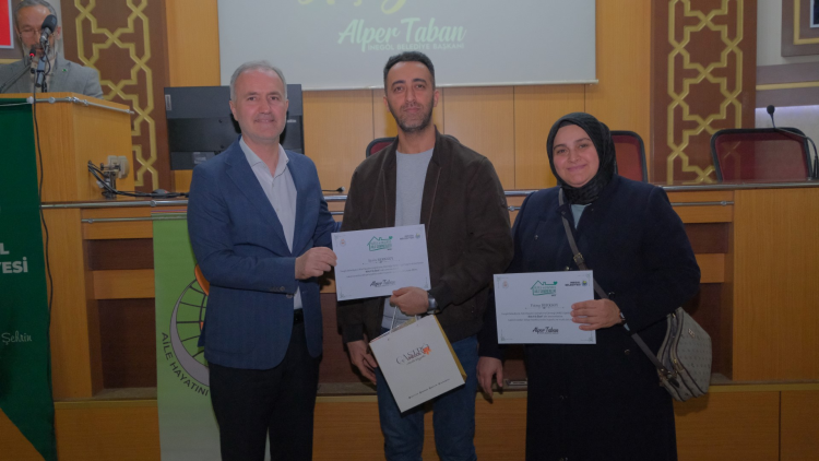 Belediye Başkanı Alper Taban, AHİD Başkanı Naci Köseoğlu, meclis üyeleri ve AK Partili yöneticilerin katıldığı ödül töreninde ilk 3’e giren kişilere hediyeleri takdim edildi. Diğer tüm katılımcılara da Aile Okulu sertifikası verildi. Törende kısa bir selamlama konuşması yapan AHİD Başkanı Naci Köseoğlu, “Aile Okuluna katılan herkesi tebrik ediyorum. Bu rehavet ve seküler dünyevileşme ortamında, bu konforizm ve rahat ortamında 7 hafta her Cuma burada bir şeyler öğrenip ailenizin huzuru, mutluluğu ve neslinizin kurtulması için, toplumun kurtuluşu için bu fedakarlığı yaptınız. Rabbim toplumun ıslahı yolunda hepimizi birer davetçi ve lokomotif eylesin inşallah. Ben Belediye Başkanımıza da özellikle teşekkür ediyorum. Aile konusunu çok ciddiye alıp destekliyor. Bu konuda hiçbir projeye hayır demiyor. Çünkü yangın var. Devlet Aile Yılı ilan etti. Ama devlette çaresiz. Cumhurbaşkanımız yine söyledi, nüfusumuz azalıyor, gençler evlenmeye korkuyor. Bu noktada hepimize düşen görevler var” dedi.