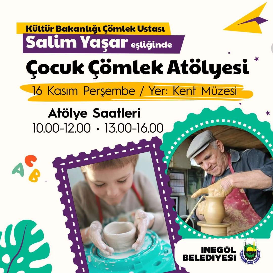 İnegöl Belediyesi, ara tatil döneminde çocukları unutmadı. Perşembe günü Kent Müzesinde 5 yaş ve üzeri çocuklara yönelik “Çocuk Çömlek Atölyesi” etkinliği gerçekleştirilecek.
