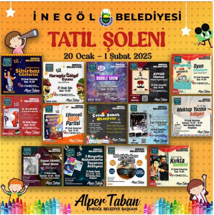 İnegöl Belediyesi 2 haftalık sömestr tatili için çocuklara tatili doya doya yaşatacak birbirinden güzel etkinlikler hazırladı. Her gün farklı bir etkinlik, tatil süresince İnegöllü öğrencilerle buluşacak.