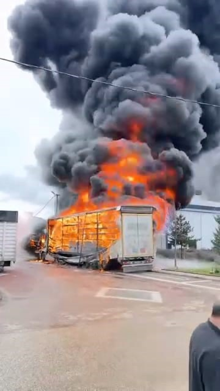 Bursa'nın İnegöl ilçesinde park halindeki sünger yüklü tır dorsesinde çıkan yangın, bitişiğinde bulunan mobilya yüklü başka bir dorsenin de yanmasına neden oldu. Yangında tır ve dorsesi kullanılamaz hale gelirken, diğer dorsede maddi hasar meydana geldi.