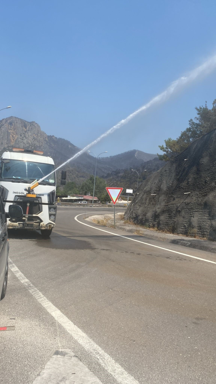 İnegöl Belediye Başkanı Alper Taban’ın talimatıyla hızla organize olan İnegöl Belediyesi ekipleri, yangın bölgesine yönlendirilerek yangın söndürme faaliyetlerine katıldı. Belediyeye ait su tankeri, özellikle ulaşılması zor noktalarda Orman Genel Müdürlüğü ekiplerine destek veriyor. Su taşıma ve soğutma faaliyetlerinde görev alan İnegöl Belediyesi ekipleri, koordineli bir şekilde çalışmalara katkı sunuyor.