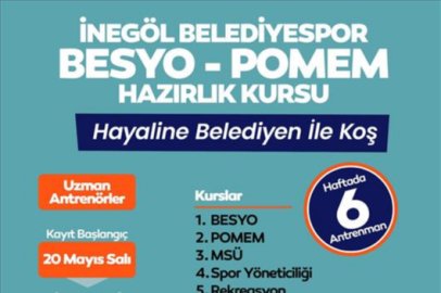 İnegöl Belediyesi, gençlerin spor ve güvenlik alanındaki kariyer hedeflerine ulaşmalarına katkı sağlamak amacıyla İnegöl Belediyespor aracılığıyla BESYO-POMEM hazırlık kurslarını başlattı.