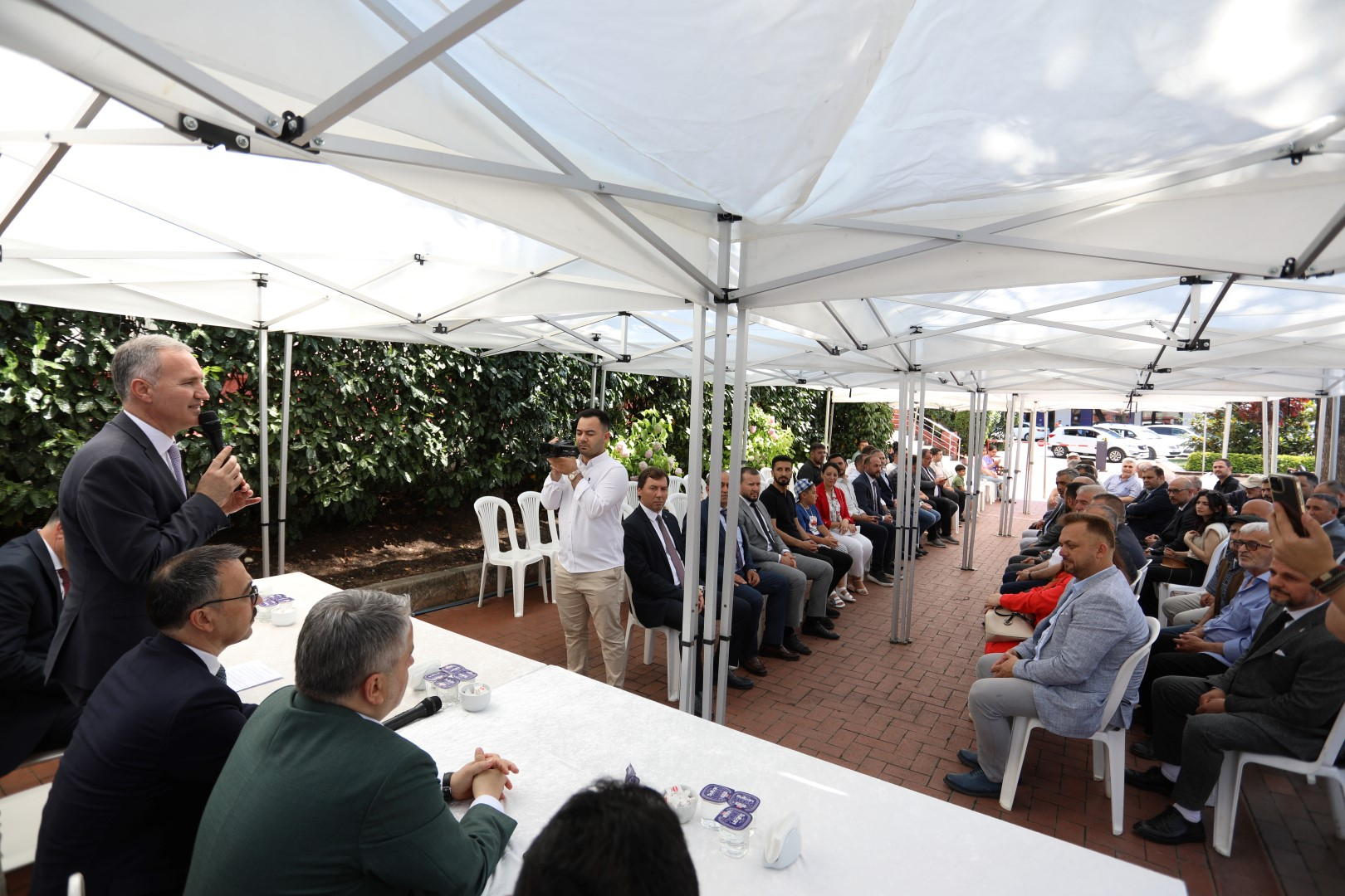 Protokol üyelerinin bayramlaşmasıyla başlayan törende, Belediye Başkanı Alper Taban davetlilere hitaben bir konuşma yaptı. Başkan Taban, “Bu yıl buruk bir bayram yaşıyoruz. Deprem hadisesinden sonra Ramazan Bayramı’nda olduğu gibi Kurban Bayramımız da hepimiz için acı bir şekilde geçiyor. Bir taraftan da ibadetlerimiz devam ediyor. Rabbim tüm ibadetlerimizi kabul etsin. Hacca giden vatandaşlarımız var. Rabbim hayırlısıyla evlerine dönmeyi nasip etsin. Ben bugün buraya katılan herkese teşekkür ediyorum” dedi.