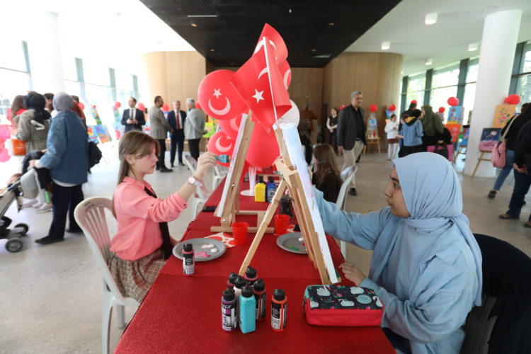 Konuşmalar sonrası kurdele kesimiyle sergi açılışı gerçekleştirildi. Ardından davetliler 200’e yakın eserin yer aldığı sergiyi gezerek resimleri inceledi. Bir yandan da salonda küçük ressamların çalışmaları devam etti. Misafirler, öğrencilerin eserleri nasıl oluşturduğunu yakından görme fırsatı buldu.