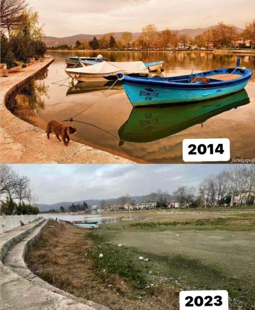 Öte yandan göldeki çekilmenin boyutu da 8 ve 9 sene önce çekilen ve bugün aynı noktadan çekilen karşılaştırmalı fotoğraflarla bir kez daha günyüzüne çıkarıldı.